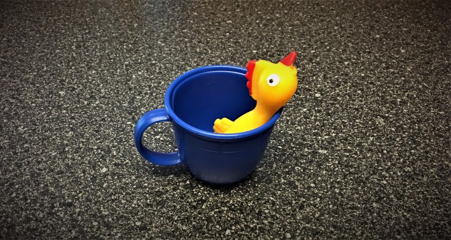 One day Arthur brings me a cup of play coffee in one of his little mugs. There is a tiny rubber chicken hanging out of the mug and he proudly proclaims, “Grandpa I made you chicken coffee!” After I nearly died laughing I dutifully “drank” the strange brew and made sure he understood that I love chicken coffee.